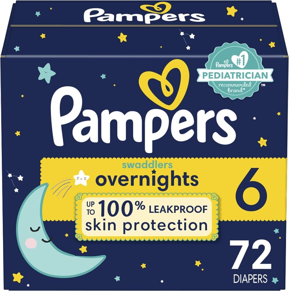Pampers Swaddlers Overnights Diapers – Size 6, 72 Count, Disposable Baby Diapers, Night Time Skin Protection