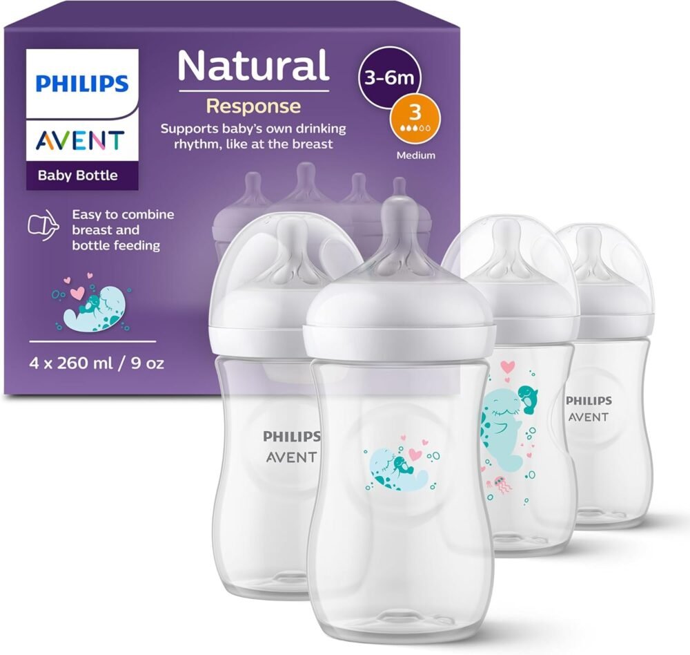 Philips Avent Natural Response Baby Gift Set, 4 Natural Response Baby Bottles 260 ml with T3 (1 m+ Teats), SCY903/61